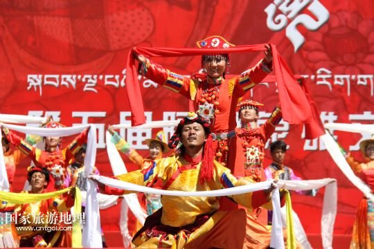 國家旅游地理 西藏阿里8月3日訊 8月3日,當?shù)厝罕娫陂_幕式上表演富有民族特色的歌舞《美麗的阿里》。當日,西藏阿里地區(qū)第五屆象雄文化旅游節(jié)在獅泉河文化廣場開幕。此次文化旅游節(jié)將舉辦阿里象雄文化研討會、旅游紀念品展覽、攝影展等十余項活動?! ? 新華社發(fā)(蔣先平 攝)