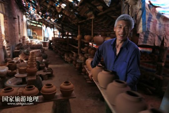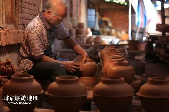 國家旅游地理 廣西河池8月6日訊 8月4日,顏福友師傅在廣西宜州市郊區(qū)他的制陶作坊里給陶器上釉。在廣西宜州市郊區(qū),65歲的顏福友師傅經(jīng)營著他的傳統(tǒng)制陶作坊,作坊里除了顏師傅,還有他的老伴和兩名幫工。顏師傅14歲開始當學徒制作陶器,如今掌握著許多手工制陶的獨門絕技,在作坊里,幫工只負責干體力活,制陶的關(guān)鍵部分都是顏師傅親手完成的。由于顏師傅制作出的陶器質(zhì)量好,許多花卉盆景、釀酒、食品等工廠單位向他訂做陶器產(chǎn)品。但是由于手工制陶辛苦單調(diào),效率低下利潤不高,顏師傅的手藝面臨著斷代失傳的危險。 /新華社發(fā)(覃剛 攝)