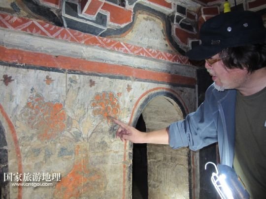 國家旅游地理 陜西延安9月15日訊 9月14日,考古學(xué)家正在查看畫像磚墓內(nèi)的壁畫。經(jīng)過近三個(gè)月的緊張工作,陜西省考古學(xué)家日前在陜西延安配合基建時(shí),首次對(duì)一座宋金時(shí)期大型畫像磚墓進(jìn)行了科學(xué)考古發(fā)掘。發(fā)現(xiàn)這座畫像磚墓竟是仿木磚結(jié)構(gòu)多室墓,對(duì)了解和研究陜北畫像磚墓形制、建筑結(jié)構(gòu)及其分布與內(nèi)容等,具有重要的標(biāo)尺性意義。 /新華社記者馮國攝