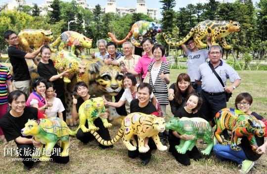 國家旅游地理 臺灣臺北9月18日訊 9月17日,人們在臺北市青年公園的云豹彩繪活動上合影。當(dāng)日,臺北市青年公園舉行“記憶與重生——臺北市青年公園公共藝術(shù)計劃”活動,讓市民們彩繪出自己心中已經(jīng)滅絕的臺灣云豹的模樣,以此呼吁環(huán)保。 /新華社發(fā)(吳景騰 攝)