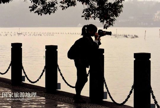 國家旅游地理 浙江杭州11月5日訊 11月4日,一對男女青年在西湖邊拍照留影。生活在杭州的人是幸福的,因為杭州有西湖。清晨的西湖,恬靜,淡雅,柔美,朦朧。岸邊,堤上,健身鍛煉的市民、散步賞景的游人,在湖水、小橋、亭閣、石欄的襯伴下,構(gòu)成了一幅幅剪影效果的水墨圖畫。 /新華社記者王頌攝