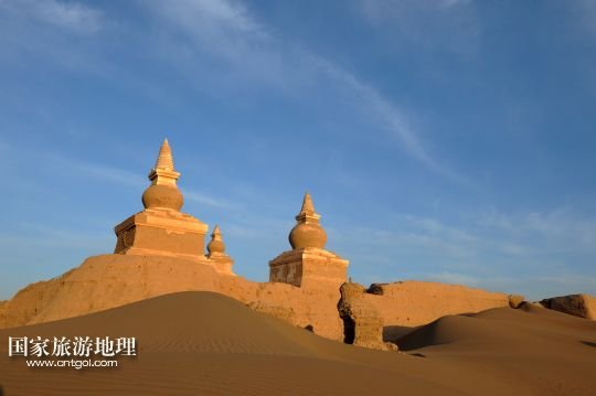 國家旅游地理 內(nèi)蒙古阿拉善4月22日訊 夕陽中的內(nèi)蒙古阿拉善盟額濟納旗黑城遺址(4月18日攝)。地處內(nèi)蒙古自治區(qū)最西端的阿拉善盟,著名的巴丹吉林、騰格里、烏蘭布和三大沙漠橫貫全境,沙漠、胡楊、戈壁、巖畫、湖泊、古城描繪出27萬平方公里蒼茫雄渾的大漠神韻,構成了獨具特色的沙漠文化旅游資源。 /新華社記者 張領 攝