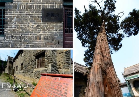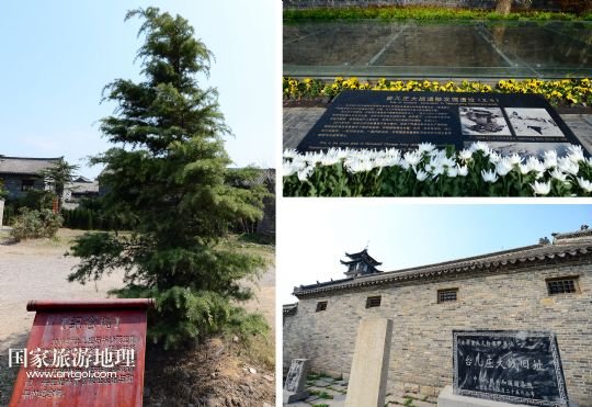 位于臺兒莊古城的臺兒莊大戰(zhàn)指揮所(左上)、民居(左下)和清真寺內柏樹(右)上,仍保存著當年臺兒莊大戰(zhàn)中留下來的彈孔(拼版照片,4月8日攝)。