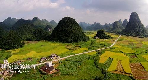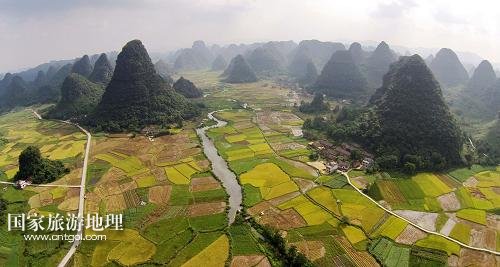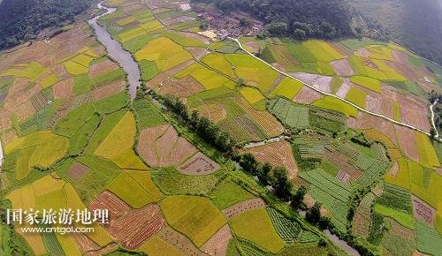 國家旅游地理 廣西柳州8月21日訊 8月20日在廣西柳州市融安縣泗頂鎮(zhèn)泗頂村航拍的田園風光。“立秋”過后,地處桂北山區(qū)的廣西柳州市融安縣進入稻谷收獲的季節(jié),金黃的稻田與原生態(tài)的山水風光構成一幅美麗的豐收圖。新華社發(fā)(譚凱興 攝)