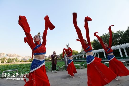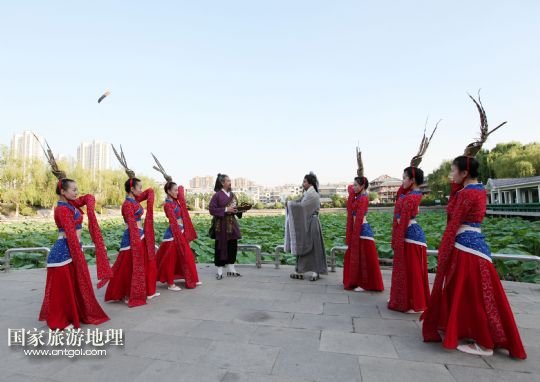 國家旅游地理 山東滕州6月14日訊 6月13日,在山東省滕州市老縣衙善國文化廣場,滕州柳琴劇團演員向市民展演柳琴戲。