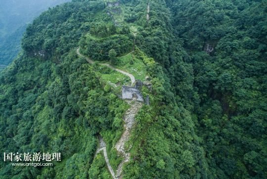 國家旅游地理 德國波恩7月4日訊 從空中看貴州播州海龍屯飛鳳關(guān)(7月3日攝)。海龍屯遺址位于遵義老城北約30里的龍巖山東麓,始建于1257年,毀于1600年。遺址所在山峰相對高度約350米,三面環(huán)水,一面銜山,地勢險(xiǎn)要,如今周長約6公里的環(huán)囤城墻尚存,囤東銅柱、鐵柱、飛虎、飛龍、朝天、飛鳳六關(guān),囤西后關(guān)、西關(guān)、萬安三關(guān)依然屹立。囤頂平闊,囤內(nèi)遺有“老王宮”和“新王宮”兩組重要建筑基址,面積均在2萬平方米左右,此外尚有金銀庫、四角亭、采石場、校場壩、環(huán)囤馬道和敵樓等遺跡。