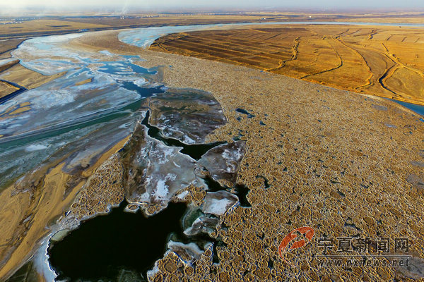 黃河銀川興慶區(qū)段流凌浮動(dòng)。