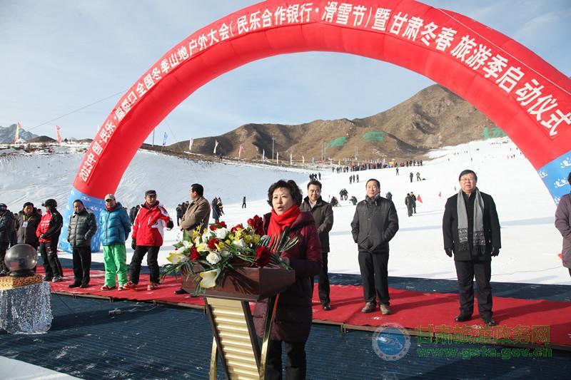 何偉局長(zhǎng)用“祁連歡歌迎盛會(huì),冰雪旅游聚英豪”來(lái)稱(chēng)贊本次活動(dòng)。她在致辭中指出,在張掖扁都口隆重舉行“中國(guó)·民樂(lè)扁都口全國(guó)冬季山地戶(hù)外大會(huì)暨甘肅省冬春旅游季活動(dòng)”啟動(dòng)儀式,這是我省體育、旅游兩個(gè)產(chǎn)業(yè)融合發(fā)展的重要舉措,也是我省淡季旅游市場(chǎng)啟動(dòng)的重要標(biāo)志。冰雪旅游是品位的追求,戶(hù)外運(yùn)動(dòng)是勇者的選擇。甘肅旅游資源十分豐富,冬季旅游資源獨(dú)具特色。為了給激情飛揚(yáng)的旅游愛(ài)好者獻(xiàn)上豐盛的冬季旅游盛宴,全省各地都在積極謀動(dòng)。特別是張掖市舉全市之力,精心策劃,全力推動(dòng),不僅在大景區(qū)建設(shè)等整體旅游工作上走在全省前列,而且在淡季旅游開(kāi)發(fā)上搞得紅紅火火,做出了示范。在張掖啟動(dòng)全省“冬春旅游季”活動(dòng),就是為了借張掖冬季旅游的火熱勢(shì)頭,帶動(dòng)全省淡季旅游持續(xù)升溫。希望全省旅游系統(tǒng)以本次活動(dòng)為契機(jī),整合資源,相互借勢(shì),形成合力,共同做熱、做大甘肅冬季旅游市場(chǎng),使甘肅豐富多彩的冬春旅游資源轉(zhuǎn)化為旅游發(fā)展新的亮點(diǎn)、經(jīng)濟(jì)增長(zhǎng)的新優(yōu)勢(shì)。