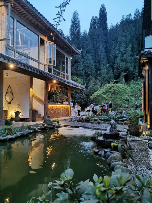 從成都主城區(qū)到眉山洪雅,自駕3個(gè)小時(shí)即可到達(dá),路況非常好。六七山居就在洪雅瓦屋山雅女湖旁,瓦屋山位于洪雅林場(chǎng)境內(nèi),被譽(yù)為全球最大的桌山,每年夏季,游客爭(zhēng)先到此避暑,每年冬季,游客蜂擁而至看雪。到了眉山洪雅,還可以順道去一下柳江古鎮(zhèn),去瓦屋山便會(huì)路過。在瓦屋山的層巒疊翠中,花溪河圍繞著具有獨(dú)特川南古民居風(fēng)格的吊腳樓,臨水而建,宛如一幅山水畫。